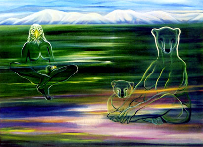 Shape shifting touches the very soul of the Indian. Brothers in nature, it is quite natural for him to feel as one with the spirit animal sounds in his chanting, just as he feels Earth Mother's heartbeat in his drumming.