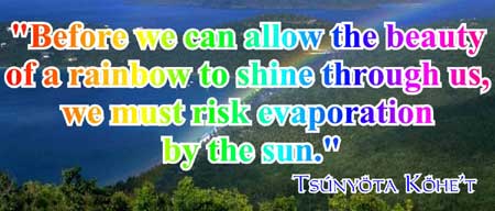 | When we become enlightened, we see everything. Colours are brighter, and the various shades of any given colour are more discernible. The world becomes crystal clear and beautiful. We cannot imagine that anything could be so beautiful, as the simple reality of the world is, when we allow ourselves to see the simple reality of the world. | |