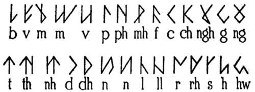 The first ten letters were derived from the creative Name of God, /|\, and represented a, p, c, e, t, i, l, r, o, s;